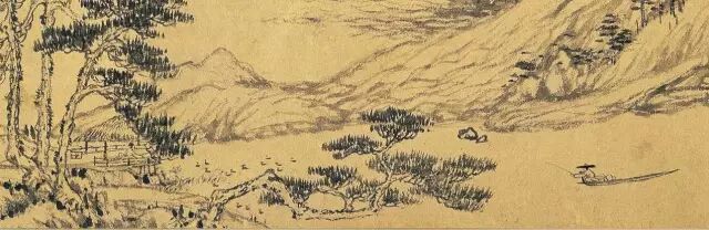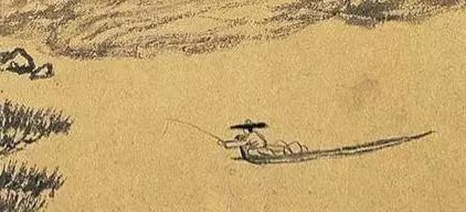 放大以后觉得好漂亮,我常常在家里很开心,就是用数位的方式一点一点放大,那每一个部分一放大以后,突然想到说,渺沧海之一粟,原来《秋声赋》或是《赤壁赋》里讲的是这个东西,就是一个渔夫这么安静地垂钓的那个感觉,寥寥几笔,淡墨。然后那个远远的远山,用非常枯涩的笔,那个毛笔干到好像没有水分拉过去的那个苍凉感。大概是从来没有画家敢这么大胆地用这样的笔法,因为这种笔法我们有可能在传统里叫做败笔,没有水分你就蘸墨再画就是了,可是为什么继续这样拖,拖出那种干涩的感觉、那种苍老的感觉,那我想这个是一个老画家到最后试图要传达的另外一个意境。
