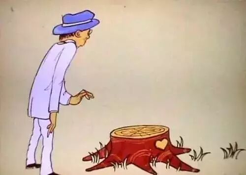 又过了很多很多年,这棵大树就剩下一个快要枯死的树根了。这个时候,这个孩子回来了。