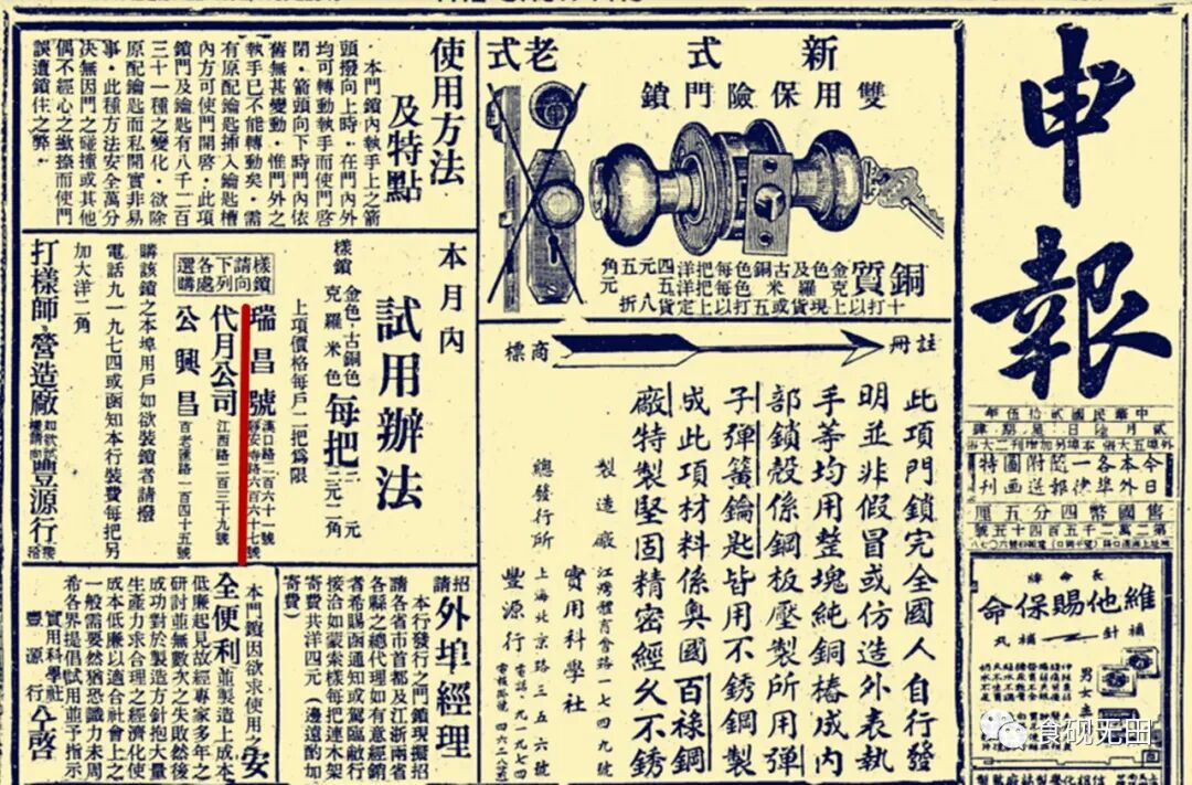 图446-2:新式双用保险门锁广告(《申报》1936-02-06,第1版)