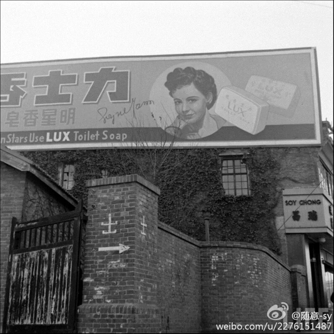 图446-1:1948年,上海戶外广告-力士香皂,位于南京西路美国斜桥俱乐部边上,力士广告牌下即瑞昌号(南京西路667号)(图via随意兄)