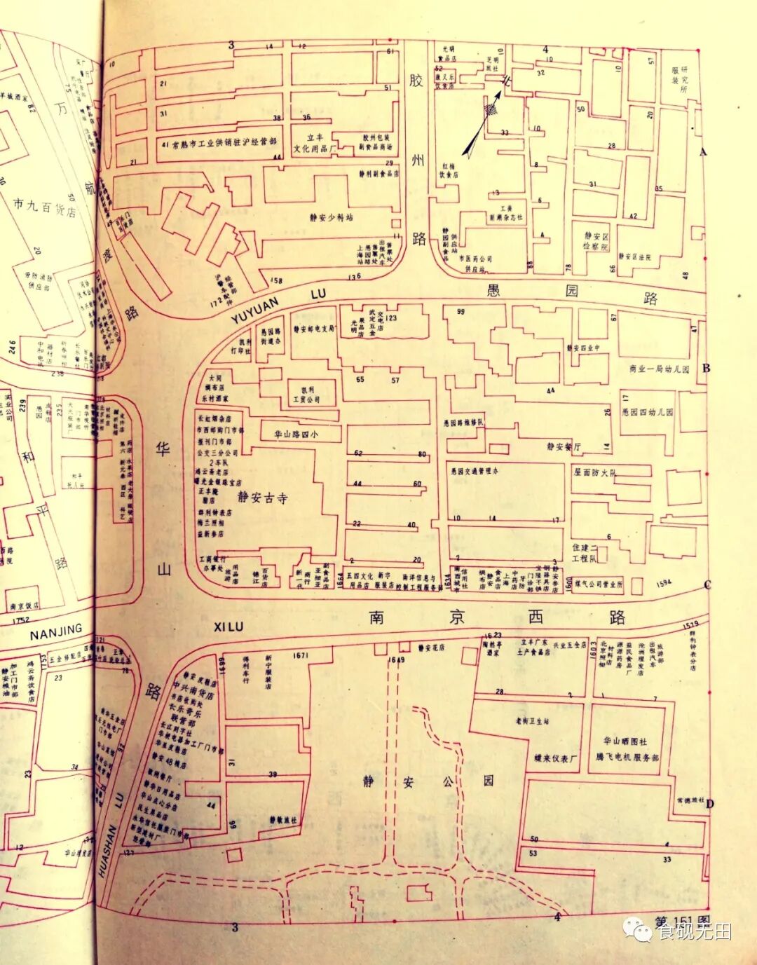 题图1:静安寺、南京西路、华山路、愚园路、庙弄等(1989年版《上海商用地图》图151-2)