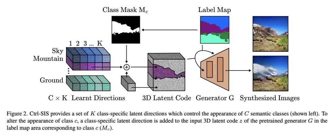 Ctrl-SIS通过优化过程发现可解释的类特定潜方向,允许在不影响图像中其他类的情况下对目标语义类进行局部更改,可产生高质量和多样性的图像编辑。