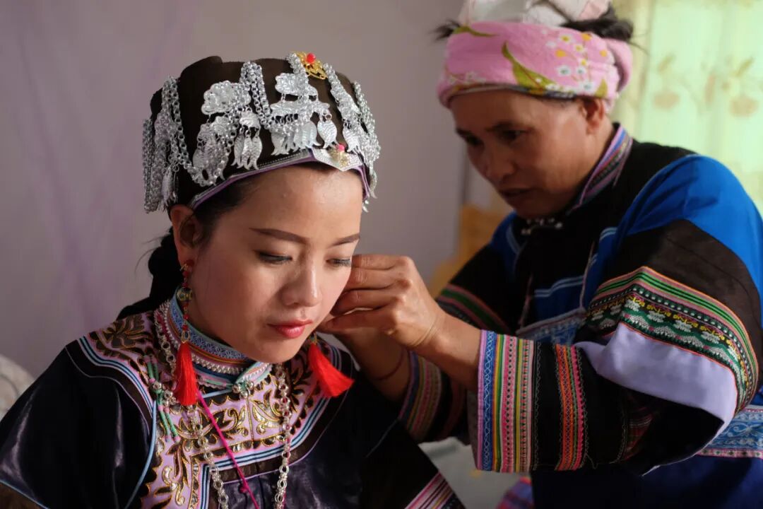 我在昆明再次见到了月琼,她目光清亮,眉间轻松,只有过得舒心才能有这般鲜活的气色。婚礼后我和老公反思了很多,我们身在其中感受到每个人的祝福后,就更应该好好生活。接下来平淡的生活也需要好好经营,要不然对不起这些亲朋好友,那么认真、真情的付出。当然,生活还是自己的,但因为有了这样的一天,让我们记住了这件事,有了这样的仪式,让我们对彼此也对所有亲友做出了承诺。婚前我就有孩子了,当时觉得好恐怖,生活怎么变得这么糟糕,非常没有安全感,甚至偷偷在结婚前几天买了一份终身保险(笑)。我是个喜欢空想的人,发现结婚生子是很现实的事,因而非常恐惧。但完成仪式后,这样的恐怖感完全消失了,意识到这是非常自我的焦虑。长辈给新人整理衣装,眼神里充满了期望和祝福