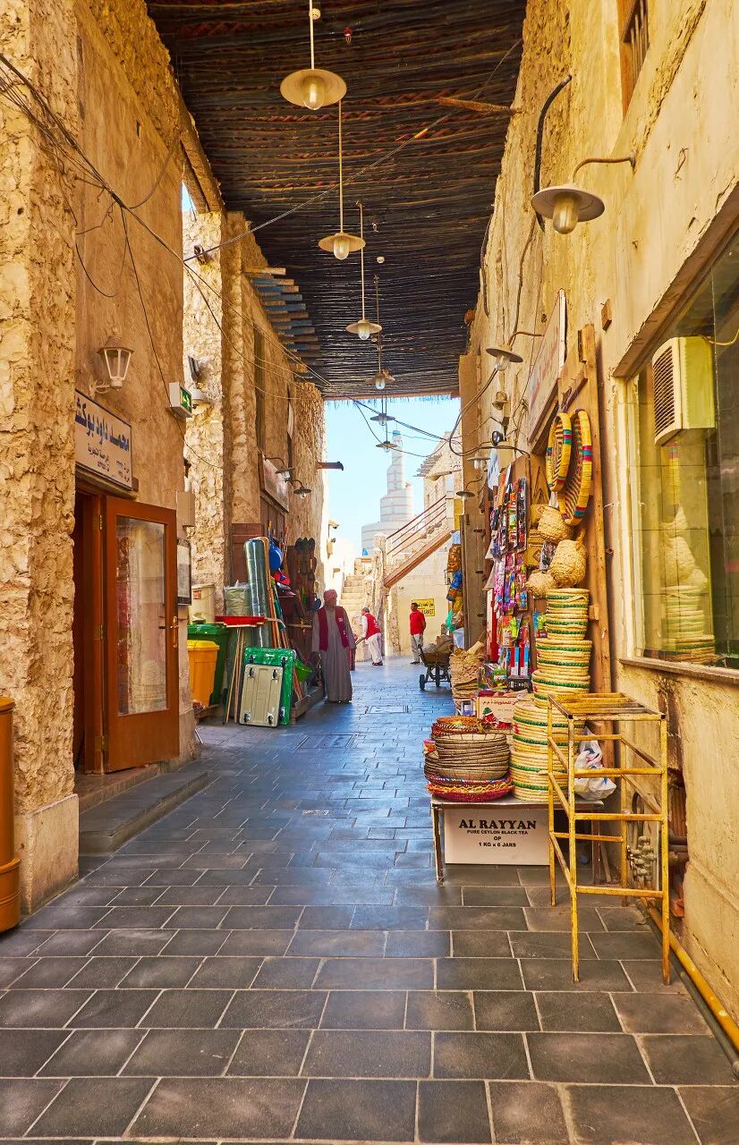 黄色的建筑映衬着湛蓝的天,更显辉煌和庄重,旁边就是望不到头的海岸线,就像是艺术的延伸,浪漫又迷人。星罗棋布的店铺遍布在如同迷宫一般的市场中,商品琳琅满目,应有尽有。即便你们什么都不买,也可以跟店主逗趣闲聊,店主也乐得与你消磨时光。如果你喜欢建筑,一定要来卡塔尔走一遭,这里就像是一座建筑博物馆,很多建筑大师都在这里留下了作品。