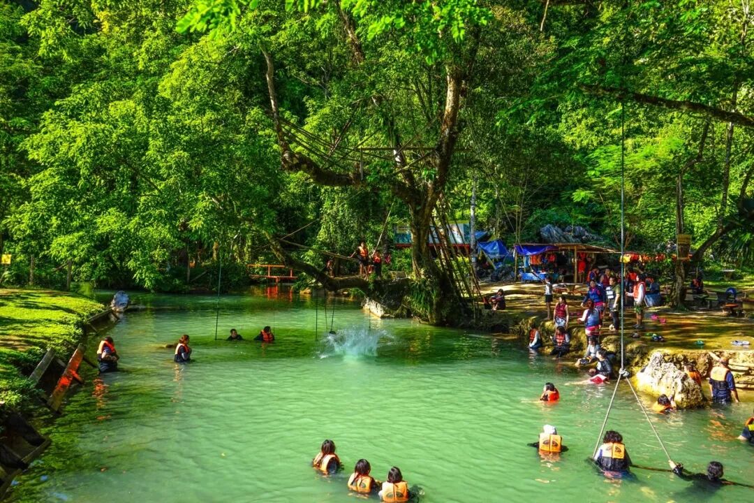 坦普坎溶洞和蓝色泻湖,是万荣的宝藏景点,这里玩得也很野。路途遥远,需要跟着导航穿过田野山岗,期间还要步行1-2公里的泥泞山路才能到达,但是绝对不虚此行噢!