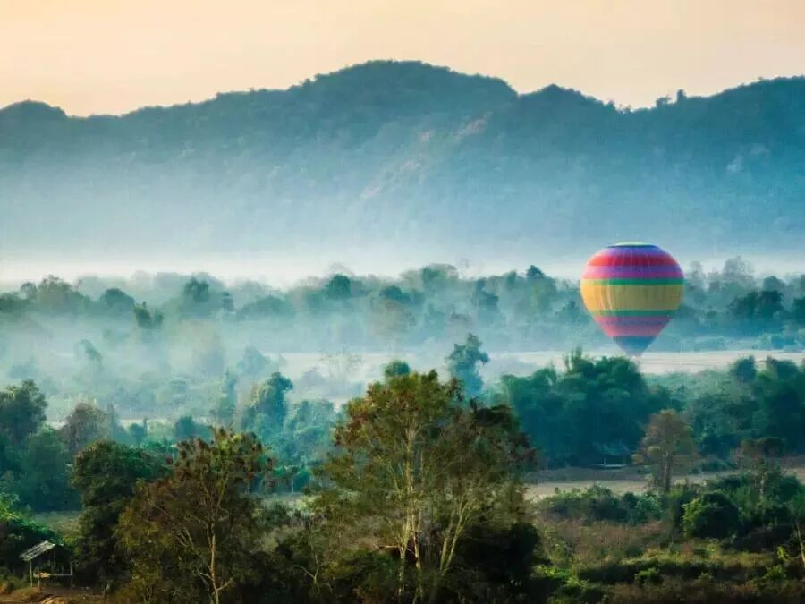 在南松河上,随处可见的是打着渔网捕鱼的老挝渔民。街道上占据主导地位的不再是城市里的汽车,而是小摩托。你想要看万荣全景?那坐上热气球!