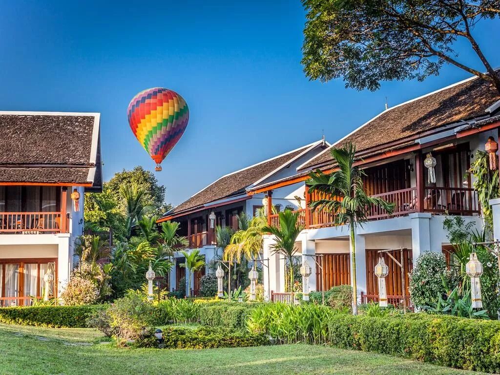酒店的客房和套房拥有现代设计和传统的老挝工艺品,房内配备私人阳台或露台,美妙的庭院景观一览无余。
