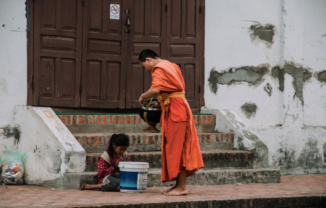 僧侣们虔诚地接受食物,等到自己钵盂逐渐满了起来,他们再将一些化来的东西施与街边潦倒的小孩。这一场施与和被施与的修行,被称为人们对琅勃拉邦的经典印象。