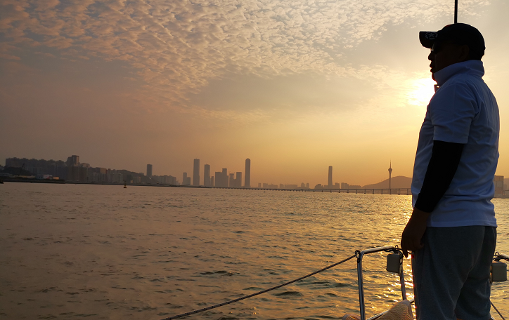 大海总有无限的神秘等着你,风浪区外居然阳光灿烂,下午五点,“蔚蓝航海”号在夕阳中回到了母港。我们带着一身漂亮的小麦色,安全圆满地结束了4天3夜的旅程。
