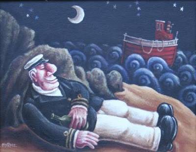 人们(也就是哈特福德的市民们)在梦里都很严肃,他们不会遇见狒狒和荔枝螺,不会联想到非洲狒狒的原始冲动,也不会觉察到“荔枝螺”一词里暗含的挑逗意味(“periwinkle”暗示“wink”眨眼)。也许是荔枝螺让诗人想起了海。“夜空发红,水手欢喜”是一句水手的谚语。一位醉酒的老水手穿着靴子睡着了,他在自己的梦里追猎着老虎。这样的诗,重在气氛的营造和想象力自由的舞蹈,与现代艺术和音乐有很多相通之处。
