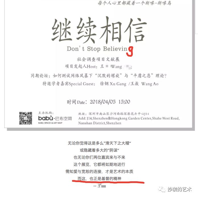 定于 2018年4月5日清明节这天的《继续相信》展览和对谈,无论如何,我都会做。