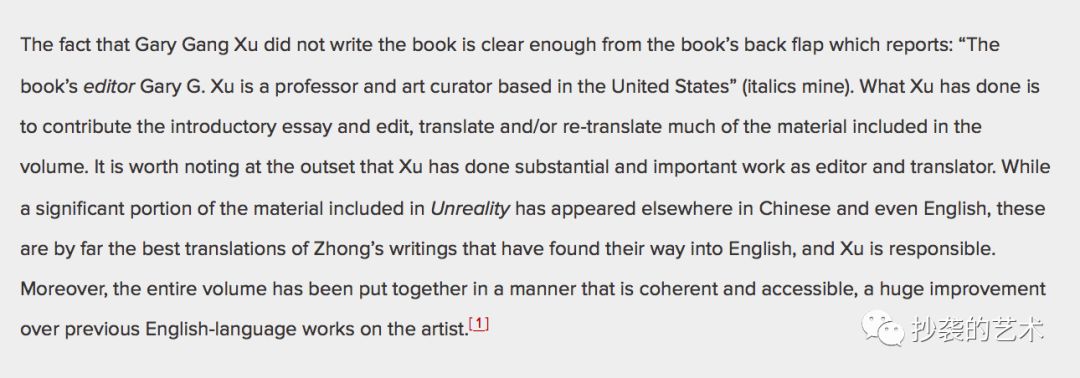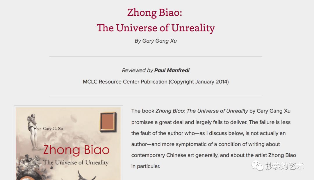 我不知道徐钢怎么和钟飙谈起自己为他编的这本书,多半是邀功,因为他总不能说:“钟飙兄弟,我给你写的(写的?下面会提到)这本书,在美国的学术书评官网上被喷惨了啊!” 当然,这无关乎艺术家本人和艺术家作品,因为人家评的,也是写书的人,写书的水平。同样的材料,有人做出满汉全席,有人做出黑暗料理。