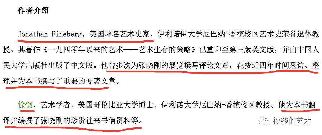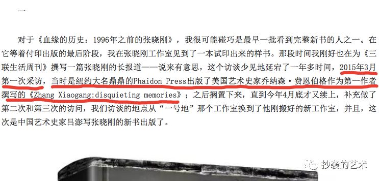 OK,既然徐钢不是“主笔”,不算在架构、取材、行文等方面有与费恩伯格同等贡献,那么他的翻译工作也是非常重要的。毕竟不懂中文的费恩伯格需要通过英文翻译了解张晓刚书信。