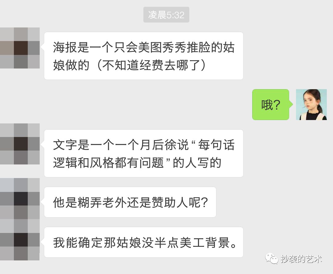 其实我们都知道展览回扣很普遍,比如除了策展费(一般都不高,但徐是高的),卖了东西会给策展人回扣,这是比较正常的。徐这个是另一个方式,有投资方的,投资方和主办方,艺术家就报一个高的预算,然后就给回扣策展人,作品预算就低了。这样大型展览、联展就变成策展人一个挣钱的地方。