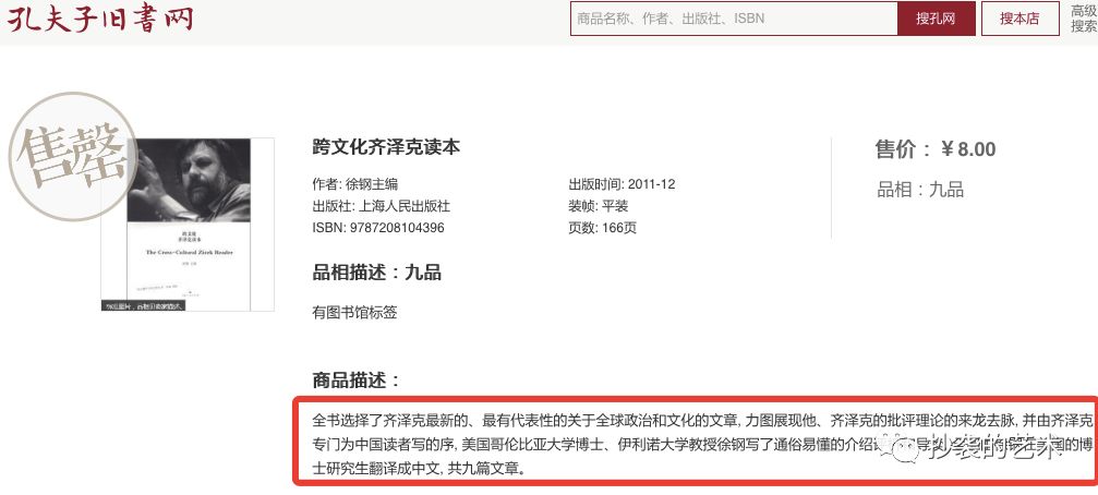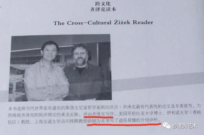 而说到这里就比较有意思了,抄袭菌上篇文章里讲到《跨文化齐泽克读本》,本以为是徐教授写的或者他翻译的,因为他一直声称这本书是他的著作。看到上面Mr.Pink说他只是齐泽克的编者后,抄袭菌立马去查了一下,嗨,你还别说,真查到了,原来这本书,徐教授只写了个通俗易懂的介绍评析和导读(原书封底只写了“介绍评析”,并无“导读”)而已,那么我们是不是可以知道大概的情况了:里面所有文章是齐泽克的,齐泽克自己还写的序,翻译都是学生翻译的,🙄️