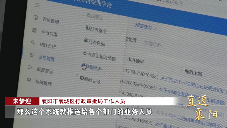 襄阳市襄城区行政审批局工作人员 朱梦迎:“将不同办件标注为不同的颜色,来表示他现在办理的一个情况。比如说我们快超时的办件,它就标注为黄色,那么这个系统就推送给各个部门的业务人员,那么我们每天工作结束的时候,也会有我们工作人员在对今天的情况进行一个汇总,把快超时的办件尽快地办结。”双管齐下,襄城区行政审批局办件效率和质量大大提升,从2021年3月施行以来,月均办件3万次,无一例超时。同时,通过开展“减流程”专项行动,实现231项办理事件在窗口可现场办结,101项审批事项减少了305个审批环节,“0跑腿”事项比例达55.42%。