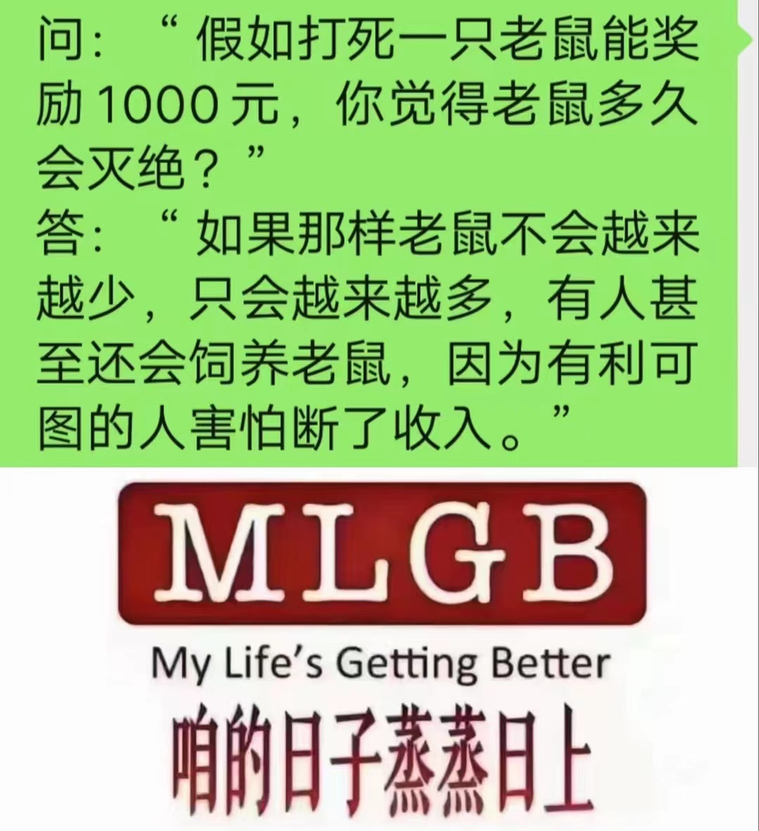在这种极端的情况下,博弈论失效了吗?没有,绝对没有。今天看到一张图,非常有意思:你以为这是开玩笑?我跟你说真实世界中,真的发生过这样的事件。说在相传在英国殖民印度的时期,印度地区眼镜蛇泛滥成灾。为了解决这个问题,当时的统治者想到了一个办法:让民众参与到捕蛇的行列当中,并且对外宣称,只要捕到眼镜蛇,就可以拿着眼镜蛇换取赏金。这个消息发布之后,广大的民众纷纷参加了捕蛇的行列当中。起初,捕蛇还是比较容易的,但是随着蛇被捕得越来越少,捕蛇难度也开始指数级增加。于是,有人就想到了一个好办法:饲养眼镜蛇,然后换取赏金。这个办法被其他人纷纷效仿,后来被统治者发现,取消了这个政策。这直接导致饲养眼镜蛇没办法挣钱了,于是大家纷纷把家养的眼镜蛇放生。结果,眼镜蛇再次泛滥,数量比之前还要多。后来,人们就把这种“弄巧成拙”的事情叫做:眼镜蛇效应。印度到底有没有发生过上面这样的故事,我们已经无法考证。不过,有一件事情是确定的,那就是“眼镜蛇效应”真的是无处不在,而且在历史上就曾经发生过类似的。2016年的时候,参考消息和中国新闻网都刊发了一条消息,说印度尼西亚鼠患成灾,于是当局拨款悬赏抓老鼠。雅加达副省长贾鲁特·赛义夫·希达亚特说,居民每捉到一只老鼠可以得到约合1.4欧元(约合10.4元人民币)的奖励。据德国《明镜》周刊网站10月19日报道,“你们捉住老鼠,清点数量,我们付钱,”贾鲁特说。他进一步指出,老鼠可能会在人口密集的住宅区传播疾病。报道称,雅加达老鼠成灾的关键原因是每天有多达1万吨垃圾被运到雅加达全世界最大的垃圾场之一。大约60%的垃圾是有机物。此外,每天还有数吨垃圾被投入利翁河。你们看,一只老鼠可以换10块钱,为了挣钱大家肯定都去抓老鼠,然后鼠患就绝迹了。如果你这样想,你就是个幼儿园小朋友都不如的弱智思维。既然一只老鼠可以换10块,我抓起来多慢,如果养的话,一次养10000只,岂非可以换10万块?养10000只老鼠容易吧,抓1万只你试试?