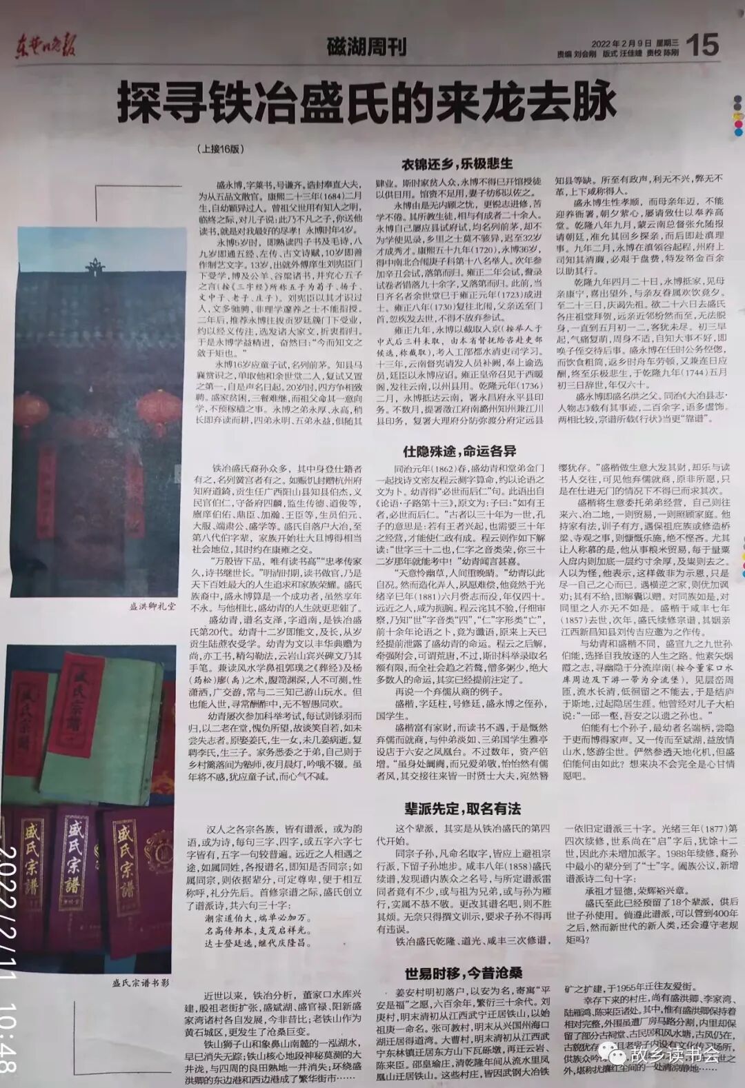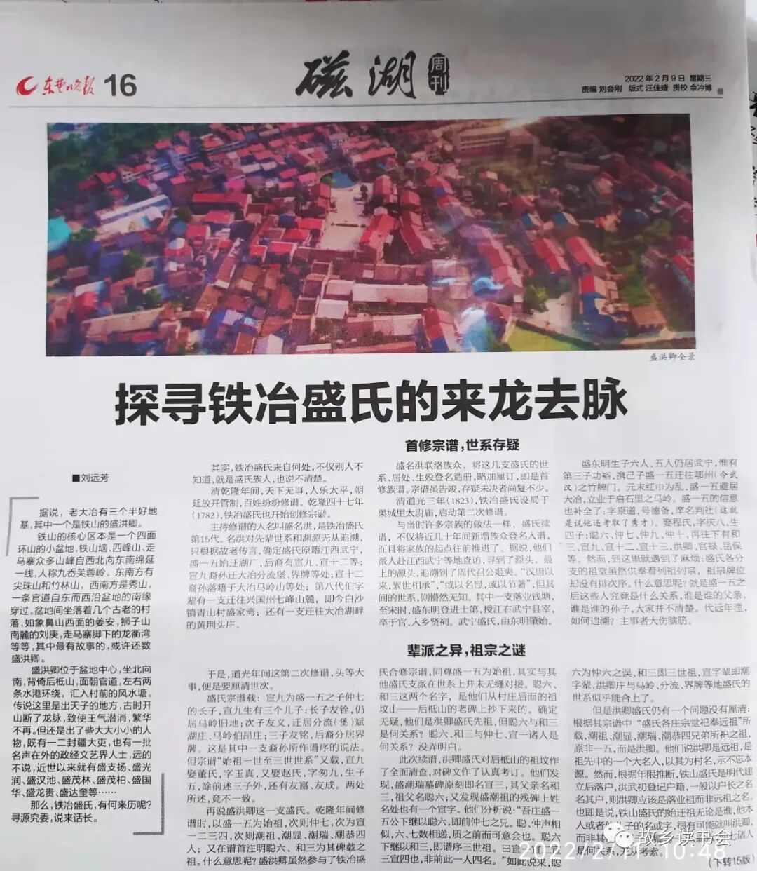 其实,铁冶盛氏来自何处,不仅别人不知道,就是盛氏族人,也说不清楚。不仅如今的族人对自己的来历茫然无知,而且远在两百多年前,盛氏族人就心中无底。
