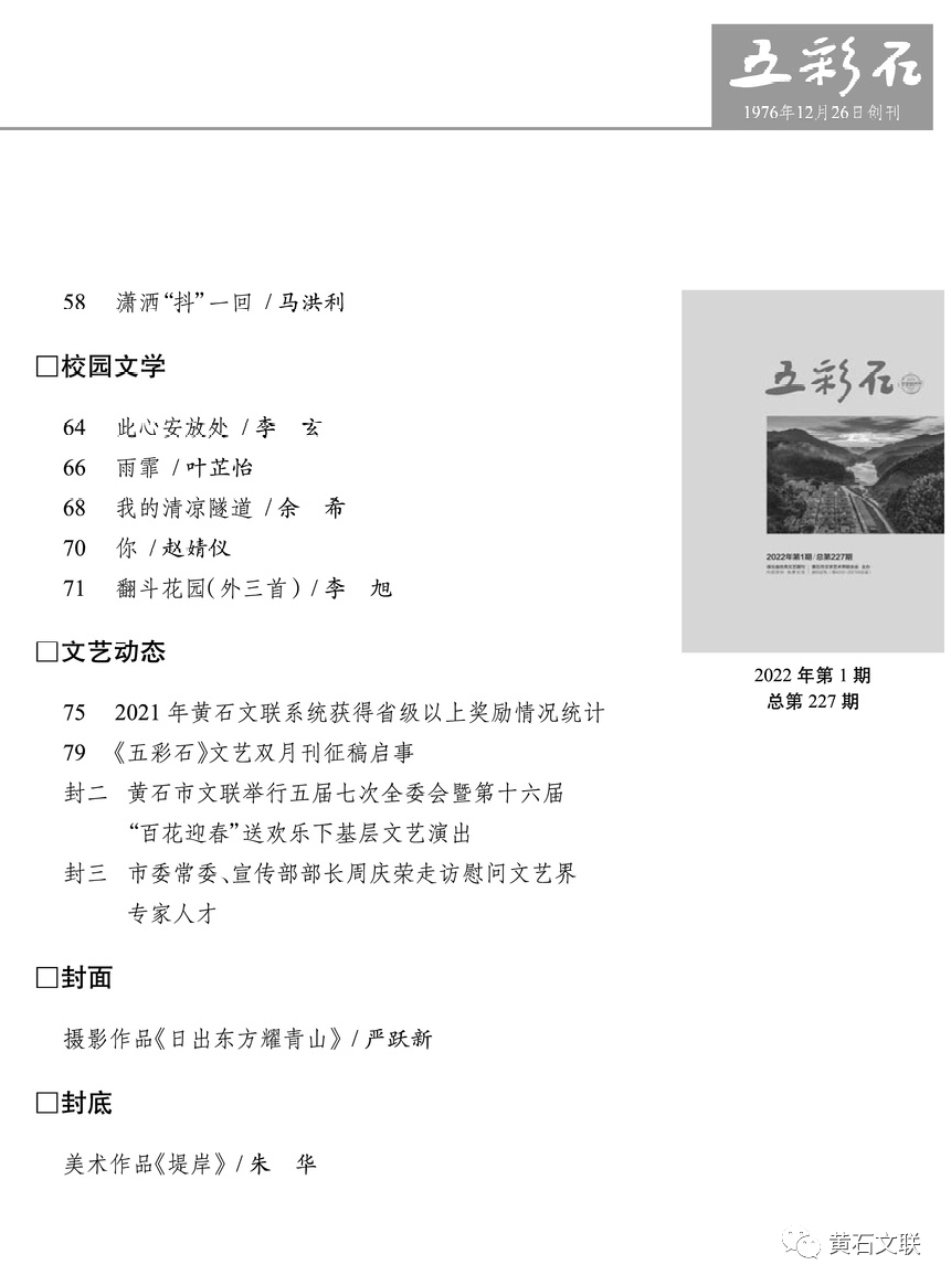 欢迎关注“黄石文联”微信公众号,及时赏读原创美文!