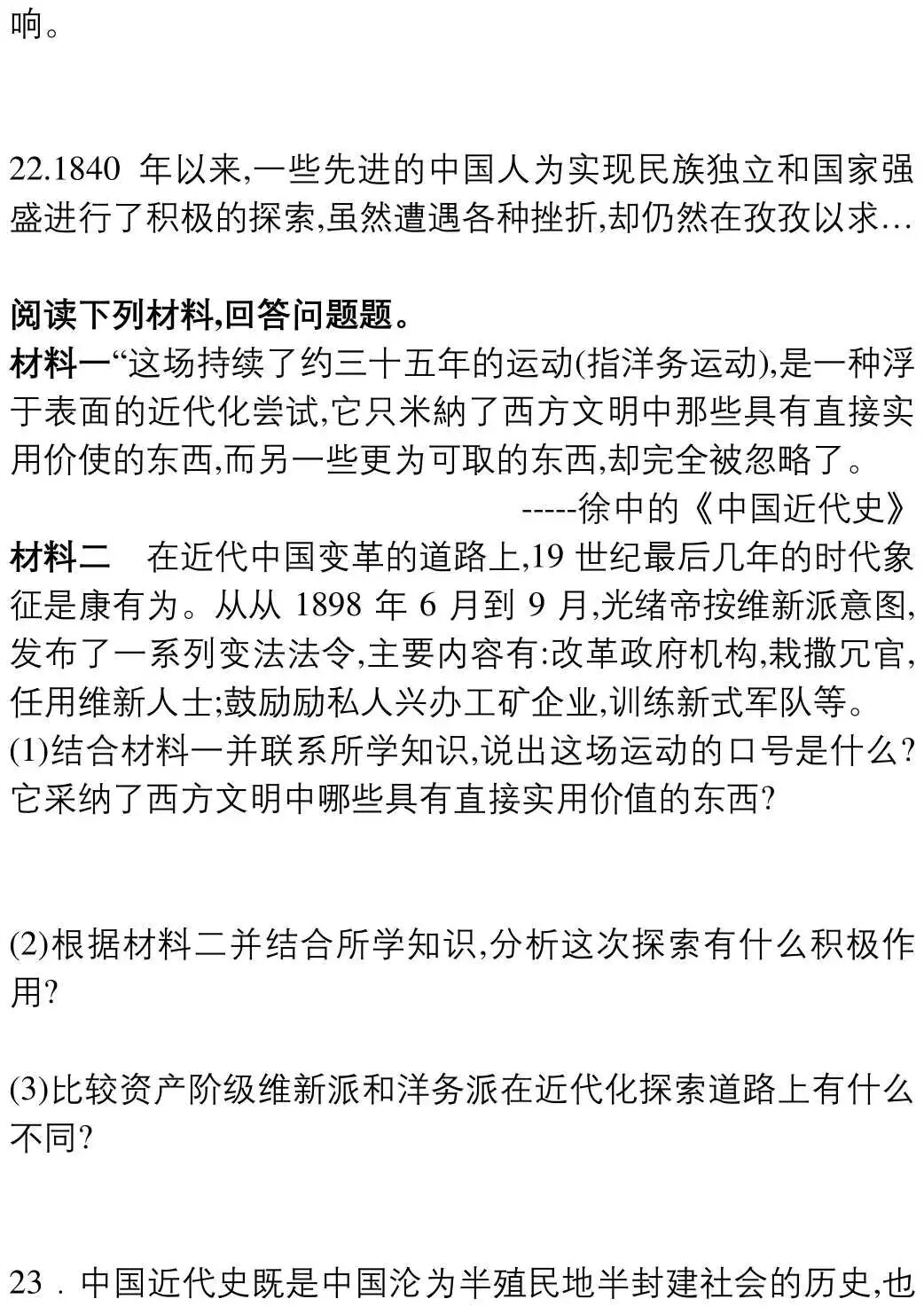 2018-2019学年上学期期中试卷-八年级历史(部编版)附答案