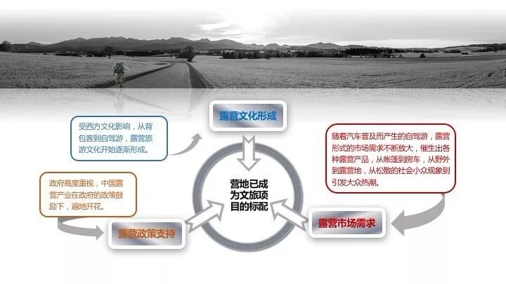 从市场端来看,国内中等收入群体成为最重要的推动。自驾游基础的形成,国内私家车拥有量超过1亿辆,以及原有的形态产品,比如周边的民宿、度假村、精品酒店,在此之上,促成了营地或者露营消费市场的形成。露营是一个新形态的度假产品,这个产品更亲近自然,具有非标住宿体验的独特优势,所以在市场需求这一端,营地的机遇来了。从政策方面来看,要感谢国家不断出台的政策,这些政策都给营地带来了很多向上的力量,也推动了国内露营文化的形成。
