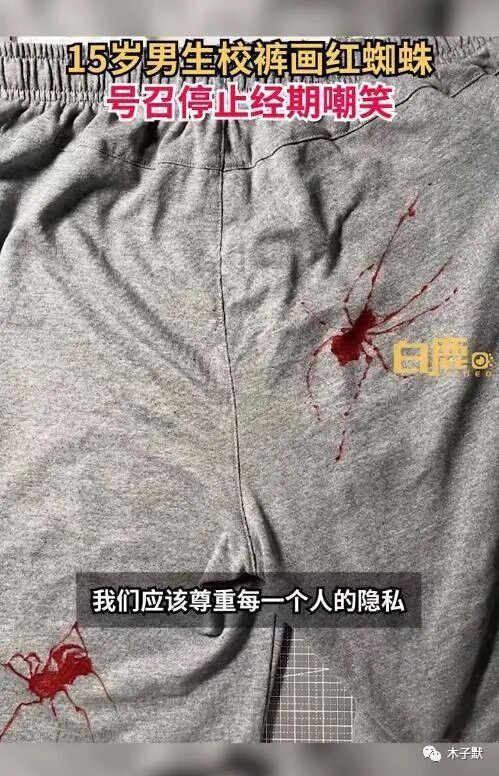 一个女生来月经弄脏裤子,男同学画漫画让大家不要嘲笑,在女生的裤子上画了两个红色的蜘蛛。