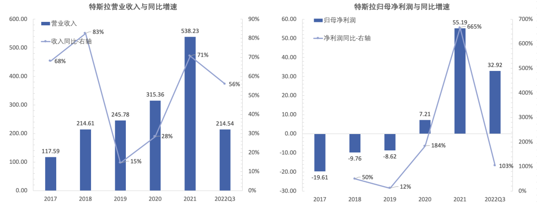 2022年三季度,特斯拉的新能源车业务营收为186.92亿美元,同比增长55%,环比增长28%。