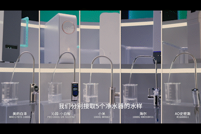受制于RO反渗透膜的性能特征,净水器长时间停用,就会有一些废水反向渗透到净水这一侧,造成长时间停留后接的第一杯水的TDS值变高,影响直饮健康。针对这个问题,除了AO史密斯,剩下的四家在详情页中都宣称有对应的解决方案,主要是针对长时间停留后的过滤技术。在这项测试中,通过加入氯化钙模拟增加水溶性固体含量和加入流体颜料模拟大分子颗粒物的方式,模拟高度污染的水源,经由净水器净化后已经变得清澈。在日常生活中,炒菜常用的不粘锅,快餐盒,家居常用的化学去污产品这类生活中常见的产品,尽管为生活带来了便利,却也可能带来了更防不胜防的污染。在这些产品被使用或者被废弃后,反而会产生一些持久性有机污染物的新面目“潜入”人们的生活,令人防不胜防。面对这些新兴污染,这五款净水器,是否能够履行自己的产品职责?从产品详情页来看,沁园有提到,其对有机化合物和持久性有机污染物能够滤除;海尔则提到,可以过滤有机化合物。