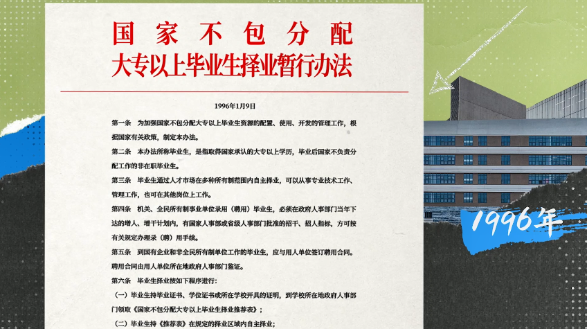 每年6月,高考结束,家长们都会到处打听,这两年到底什么专业热门,亲戚朋友都要被问个遍。所谓热门,就是预判一下,四年之后出来好不好找工作。而这种对热门专业的追逐,其实是在千禧年之后才真正兴起的。因为在90年代末,教育界发生了两件大事,实质性地影响了教育潮流的走向。一是1996年,原人事部印发了这份文件《国家不包分配大专以上毕业生择业暂行办法》,大学生包分配制度正式宣布退出历史舞台。就读于号称官员摇篮的人大社会学专业的刘强东,刚好卡在这年毕业,不像杭州师范外语系的马云被分配做了英语老师,东哥没能如愿当县长,不得不找了家外企的班上。从此以后,毕业招聘会开始越来越火爆,“打工”一词在大学生中流行,大学里的专业开始和市场真正挂钩。二是1999年的大学扩招,更是推动着教育逐渐变成了一门投资,专业的重要性蹭蹭涨。那时亚洲金融危机正盛,为保经济增长,国家必须在拉动内需上做文章。经济学家汤敏给中央写信,建议扩大高校招生数量,让学生自己掏钱上大学。北京大学高等教育研究所的研究表明,哪怕每名学生每年只收3000元学费,也可以拉动约179亿元的经济发展。