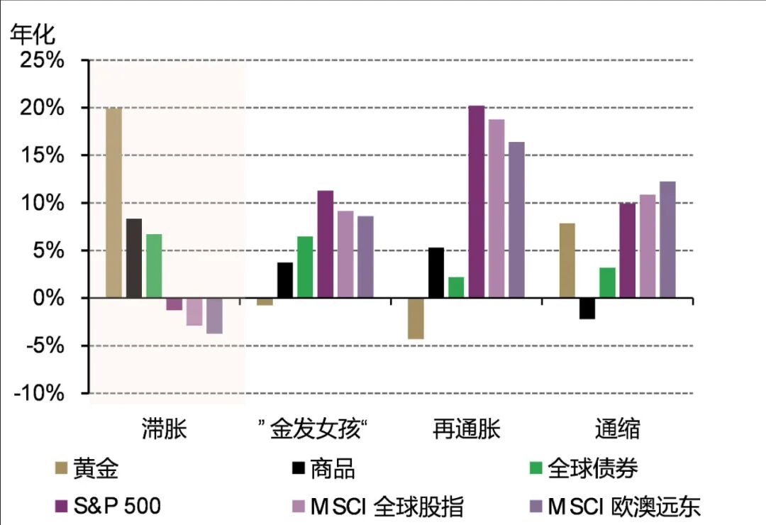 图 7: 黄金在滞胀的环境中表现最为亮眼