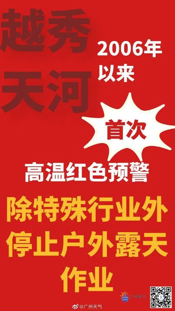 对于广州来说,2022年7月25日是“创纪录热”的一天。越秀、天河、海珠、荔湾、黄埔、白云、花都等7个行政区发出最高级别的高温红色预警信号,其中越秀、天河、荔湾、黄埔为2006年原《广东省突发气象灾害预警信号发布规定》实施以来,首次发出高温红色预警。