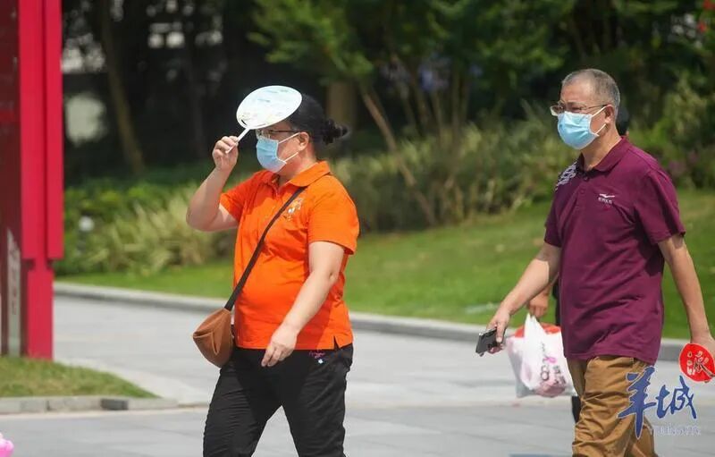 7月25日,广州花城广场,市民出行用扇子扇风遮阳