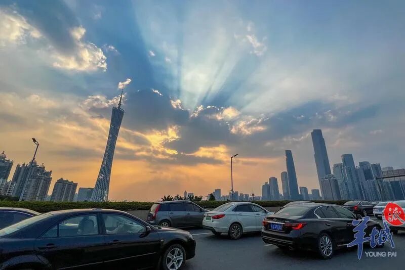 7月25日傍晚,高温炎热的广州出现“丁达尔现象”