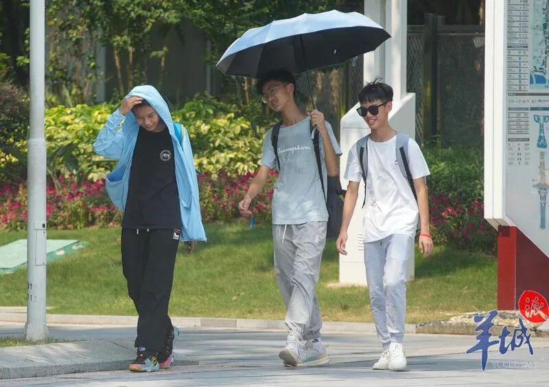 7月25日,广州花城广场,市民或撑伞或用外衣遮挡阳光