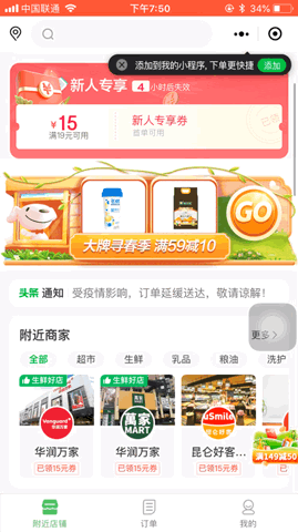 1小时达订单约满无法下单的用户也可选择半日达购买,供应充足,门店消毒,可安心选购!