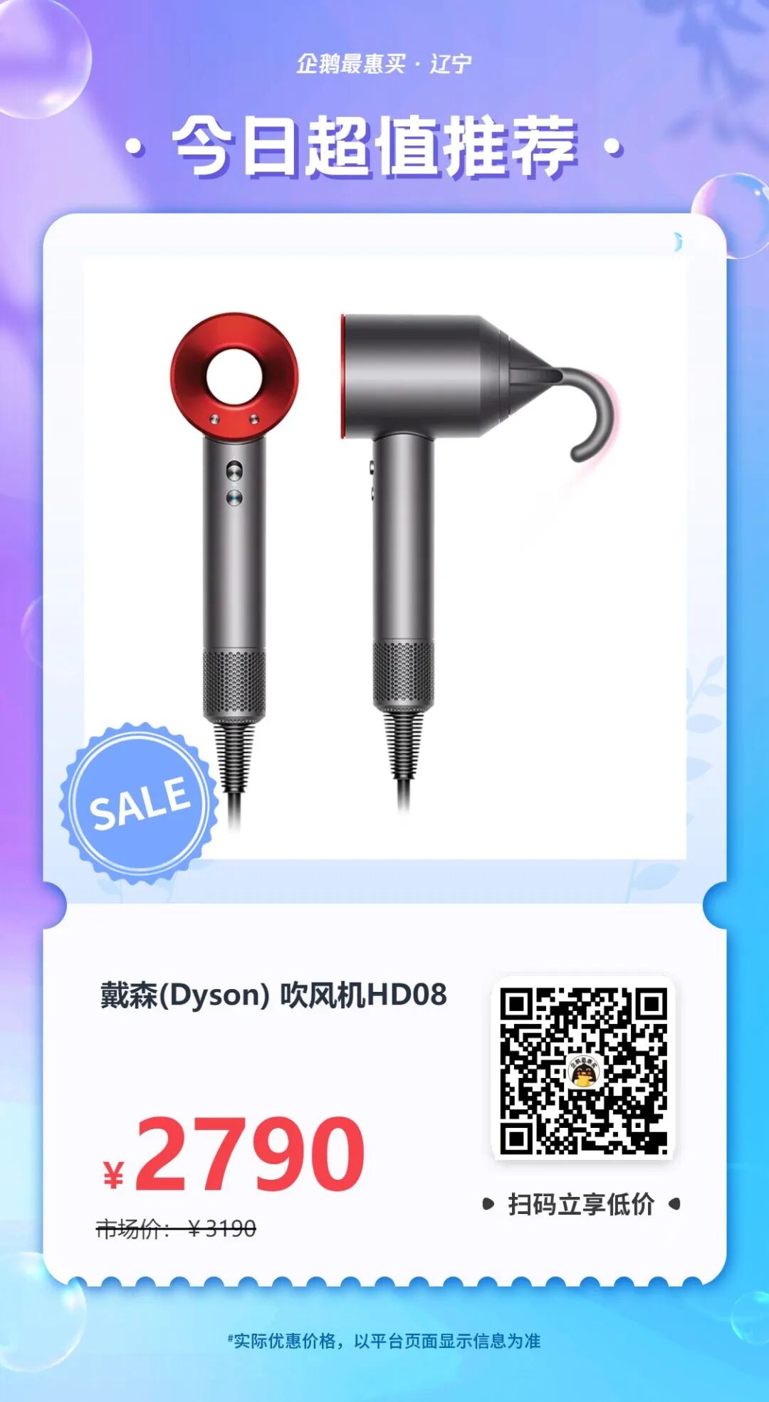 种草已久的小伙伴可以先冲一波,市场价3190元的戴森吹风机HD08新款2790元就能收,别错过这波优惠~