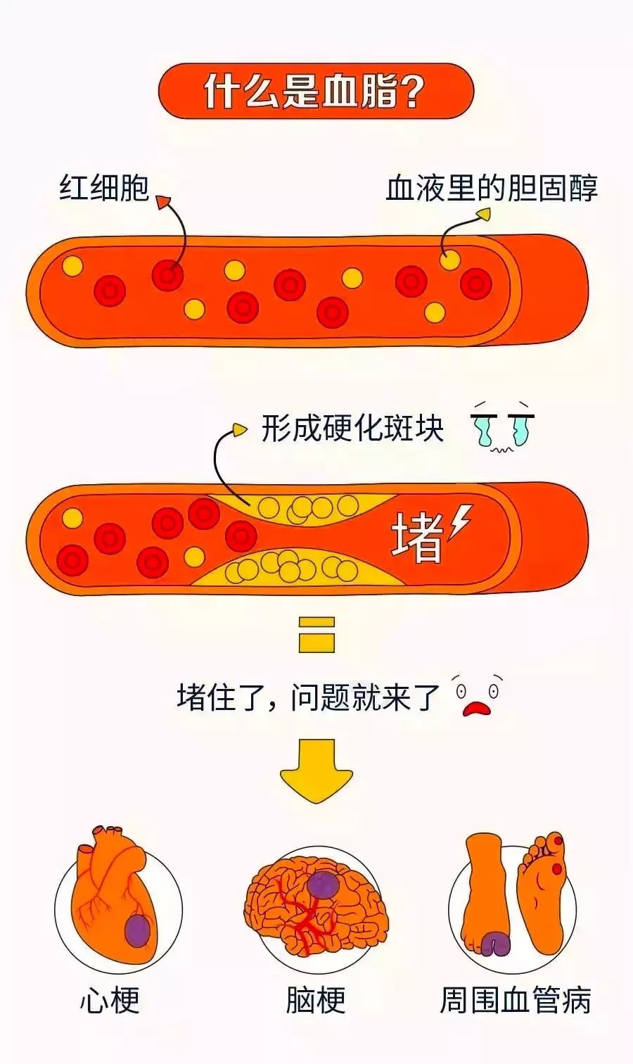 从上图可知,心梗、脑梗、周围血管病都是由于血管“堵”造成的。