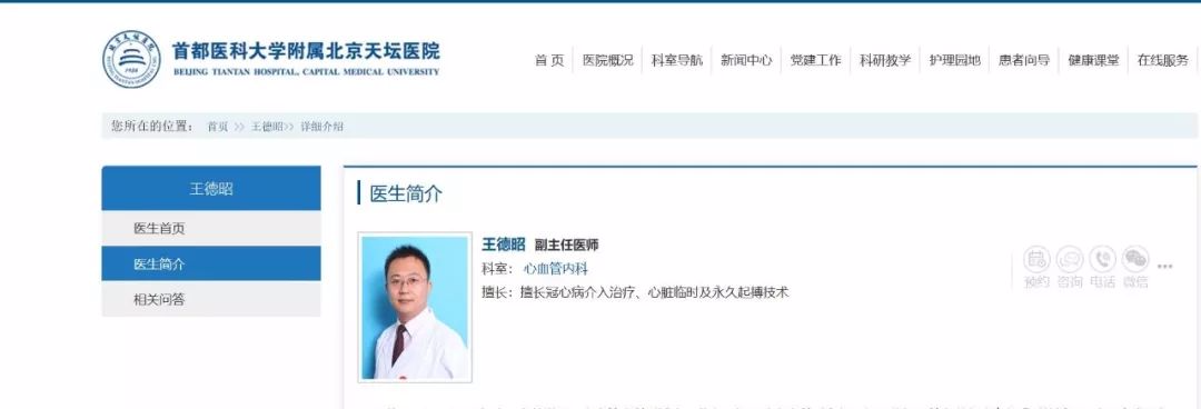 王德昭,男,1973年生,中共党员,心血管内科学博士,北京天坛医院心内科副主任医师;首都医科大学心脏病学系副教授、硕士研究生导师;从事冠心病介入工作10余年,擅长冠心病介入治疗、心脏临时及永久起搏技术;曾获第四届中国医师奖。
