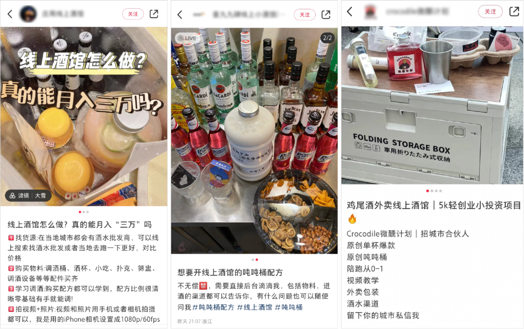 对于做「线上酒馆」的用户来说,在小红书起家,一方面可以快速获得大量的「调酒配方」,不需要自己在线下付费学习;另一方面,这些调酒配方下的评论也能够帮助他们快速了解用户需求,大大降低了试错成本。