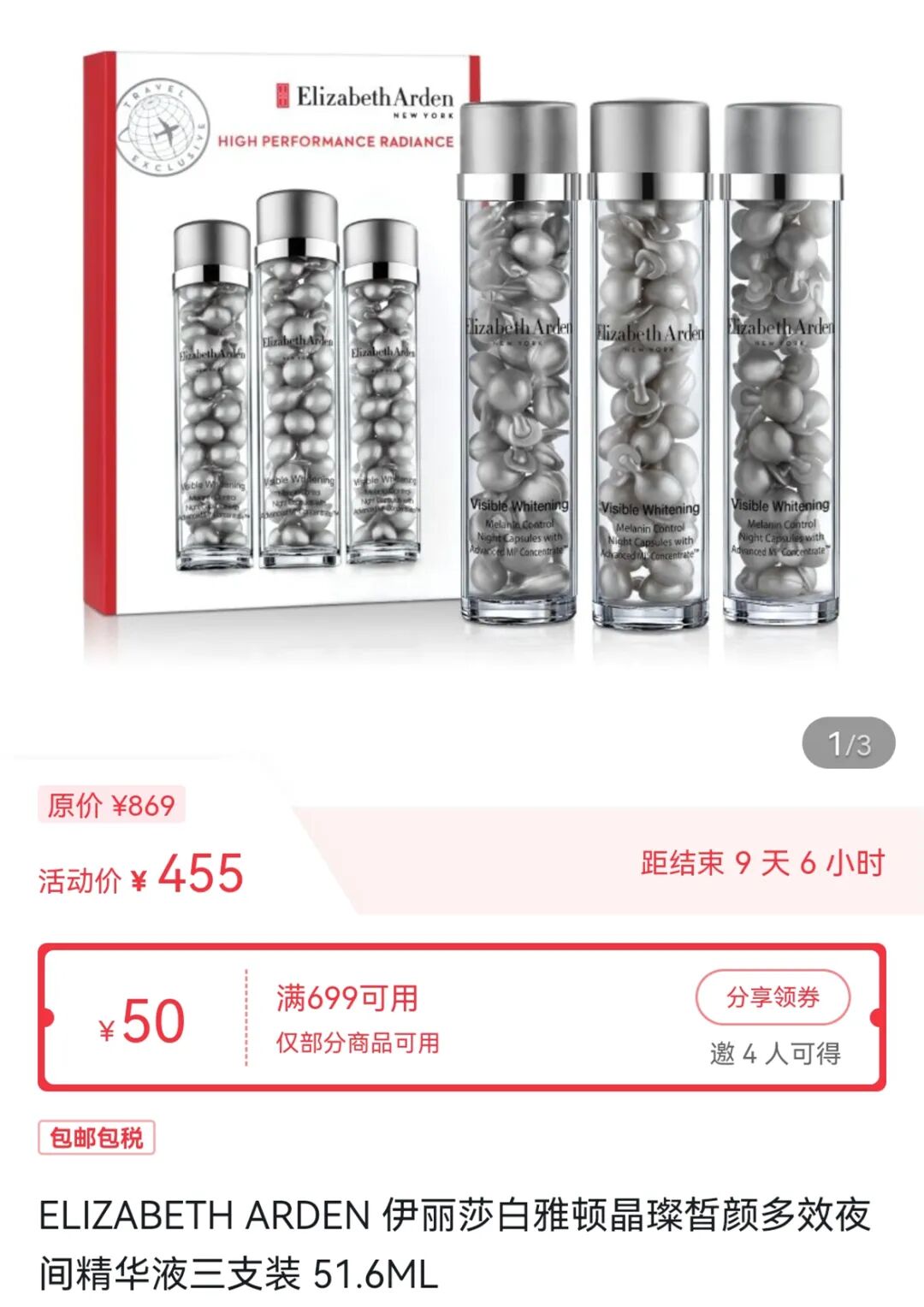 伊丽莎白雅顿晶璨皙颜多效夜间精华液 51.6ml
