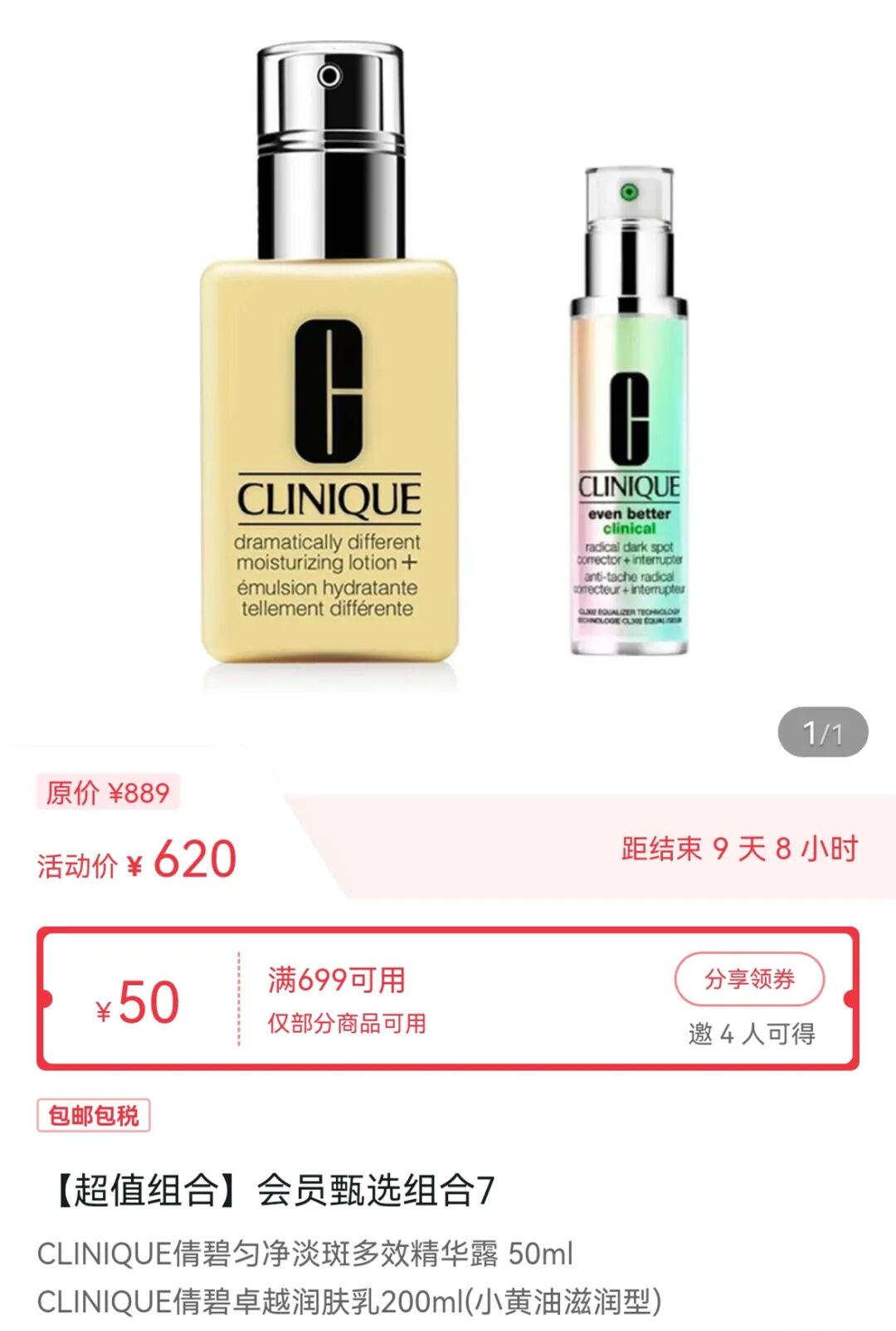 天猫旗舰店年货节价:920元/套,送同款水14ml*14+同款乳14ml*14+化妆棉30片*4