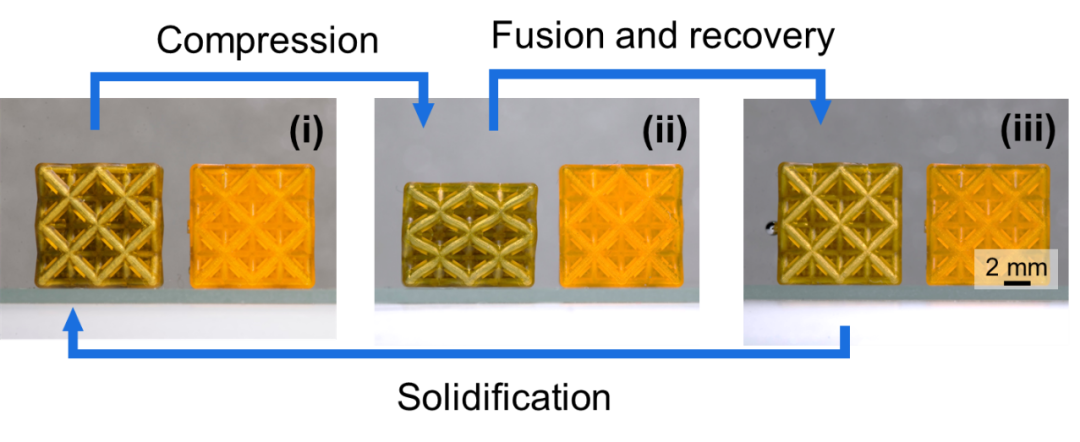 图3 液态金属-高分子点阵力学超材料良好的形状记忆效应
