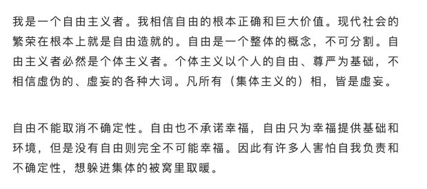 很多时候,观念不能直接影响人的行动,也不能直接影响社会现实,但是当越来越多的人支持自繇时,社会大概率是会变得更好的。我希望这一天能够早点到来。