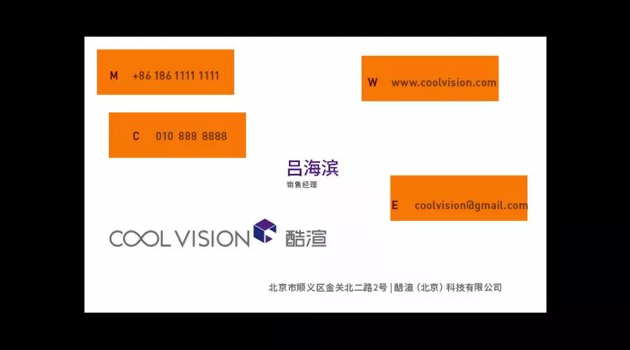 上图这个就是一个反面教材,所以我们能用简洁的形式就用简洁的形式。当然也并不是所有的名片都要用简称,具体视情况而定。