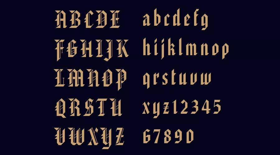 可以看到不同的哥特字,其大小宽窄还有一些写法都是不同的,我想将“暗夜骑士”做成有哥特风但同时又不会那么死板的感觉,所以选择了第三款哥特体。