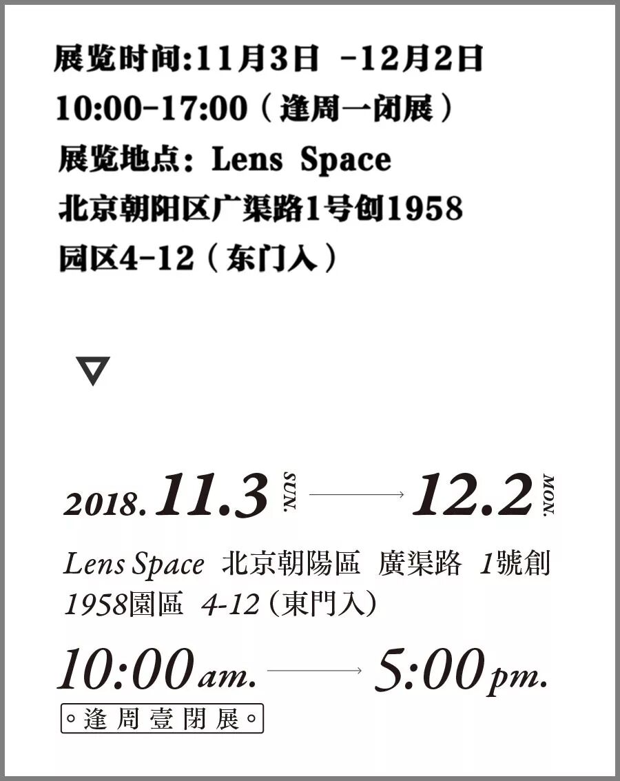 展览地点:Lens Space 北京朝阳区广渠路1号创1958园区4-12(东门入)