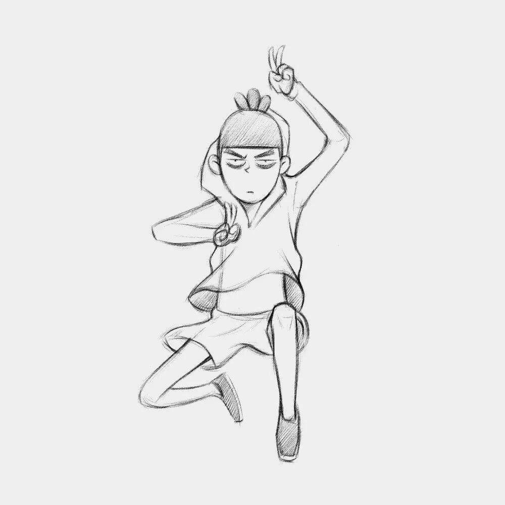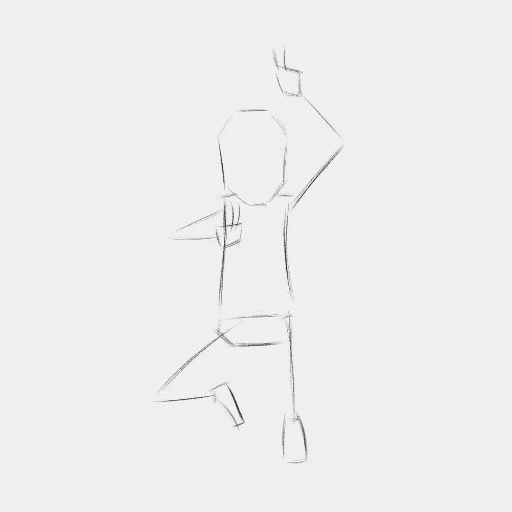 然后将草稿进行优化,要注意人物特点和基本的结构关系,我们可以将人物的结构理解为几何形,比如头部就是一个椭圆形,身体及四肢则为长方形。