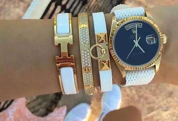 手上的卡地亚,脚上的cl,脖子上的梵克雅宝 宝格丽