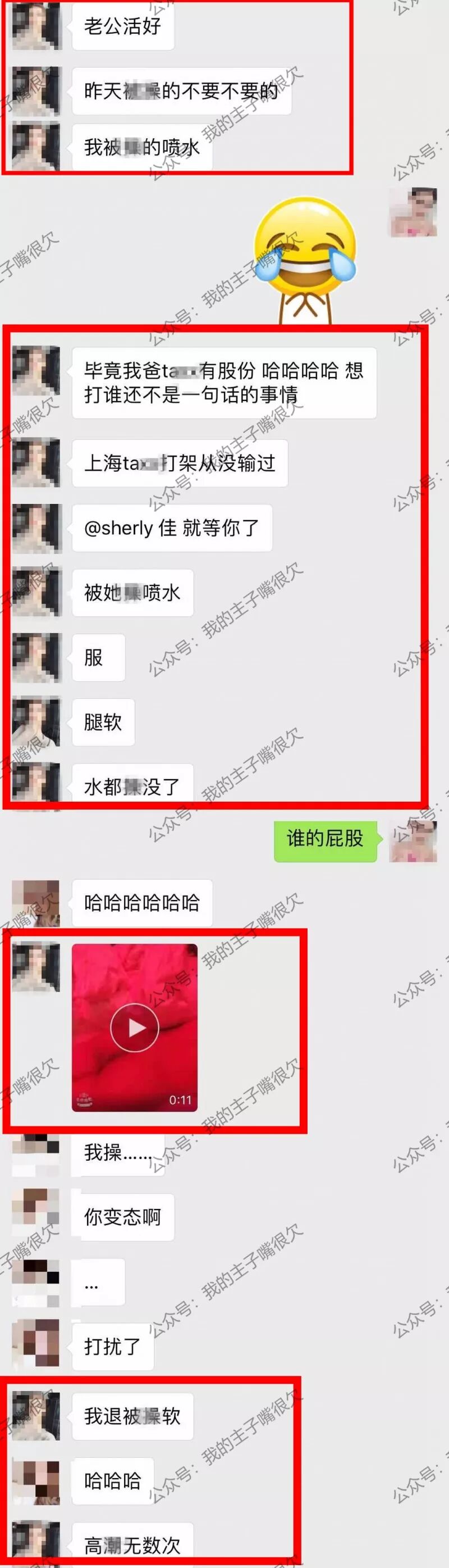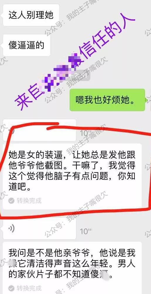 然后女性好友(一下简称妹子:B)也怒了“早说了出不来了,你搁这BB啥呢,你那个爷爷又是什么鬼?在我群里和我秀优越感?”