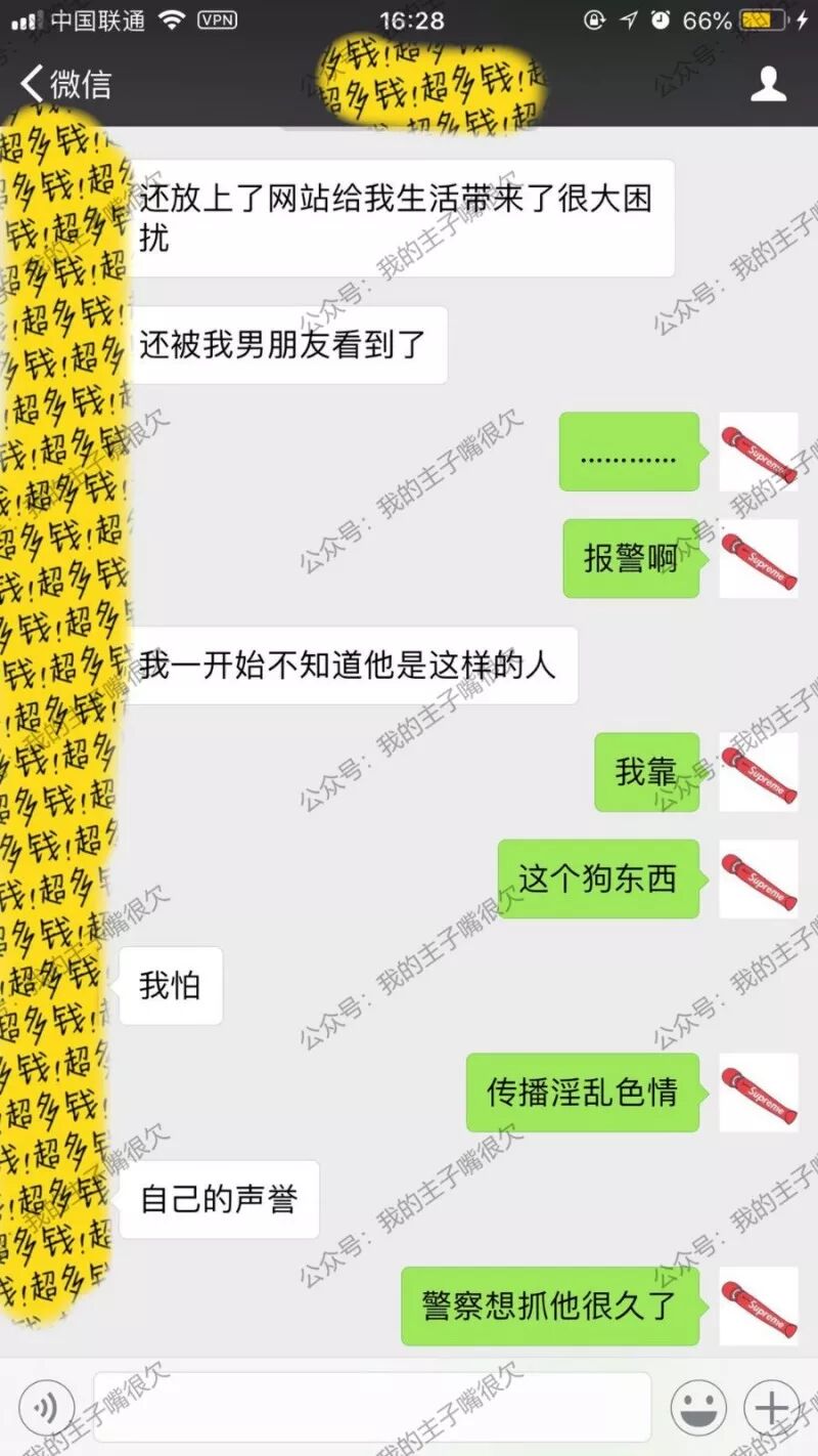 请有相关案件,或者感觉自己被要挟过,或者身边有疑似这类犯罪的受害人,请积极联系主子,主子会提供相关的资讯和帮助,以及联系警方积极办案,正义也许会迟到,可是永远不会缺席,这些罪犯种下的恶果,必须要用高墙电网和铁窗偿还,受害人的发声参与直接影响着这帮渣滓的刑期是坐2年还是10年起步(隐私100%保护)